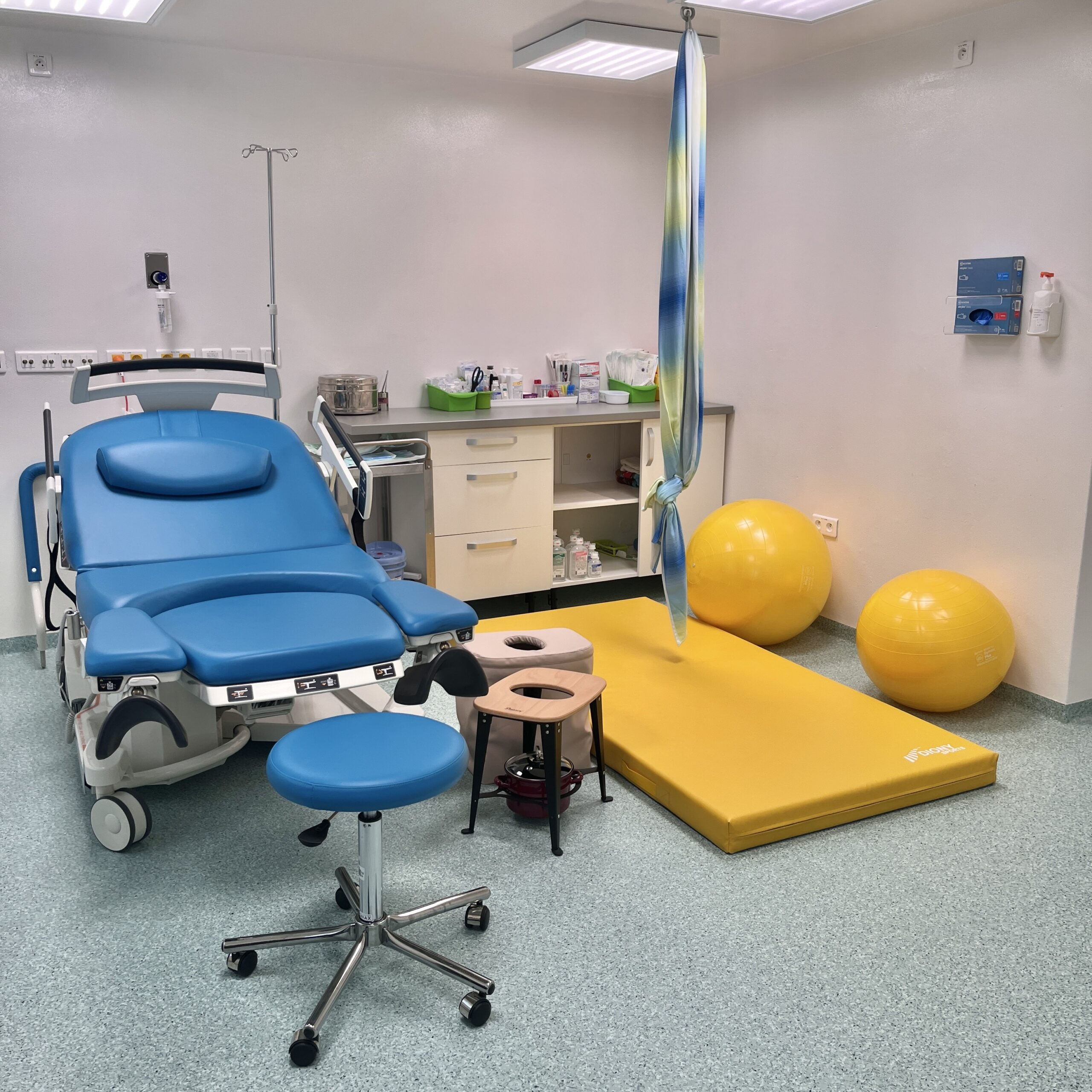 Počas prvej doby pôrodnej majú všetky mamičky voľne dostupné rôzne masážne pomôcky, fitloptu či arašidovú loptu, ktoré sa využívajú na zmenu polohy, pohupovanie, uvoľnenie, zmiernenie bolestí či relaxáciu. S využitím pomôcok vám, prípadne vášmu pôrodnému sprievodu, rady pomôžu naše pôrodné asistentky alebo fyzioterapeutka.